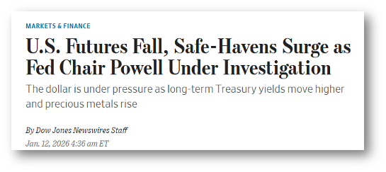I’m going to assume that by now you’ve seen that the comically named Department of Justice has launched a federal criminal investigation into current Federal Reserve Chairman Jerome Powell. Apparently, the DoJ believes Powell perjured himself in testimony before a Senate committee when talking about long-overdue renovations to the Federal Reserve building.