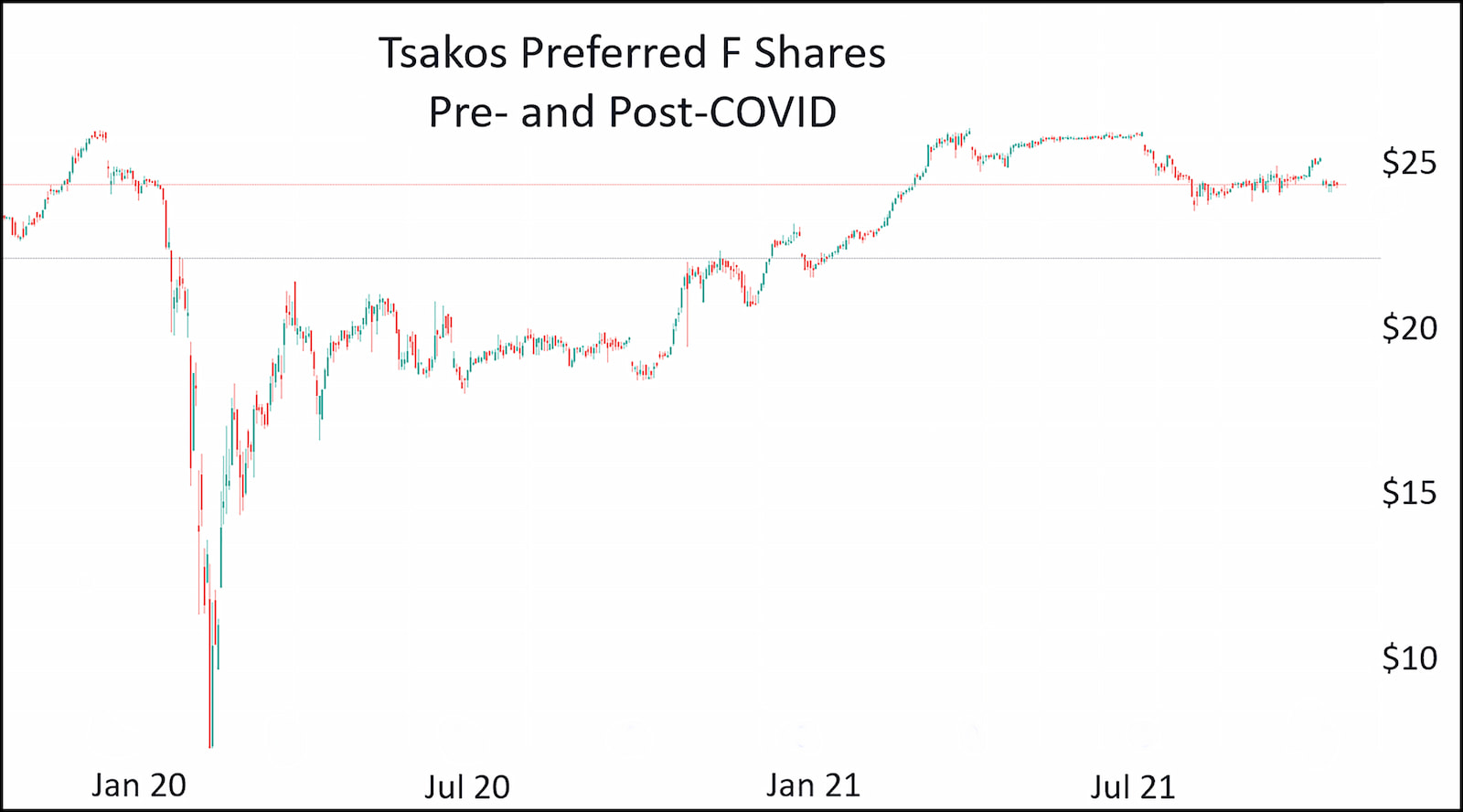 This is exactly what happened with Tsakos Energy’s Preferred F shares during the COVID panic in early 2020.
